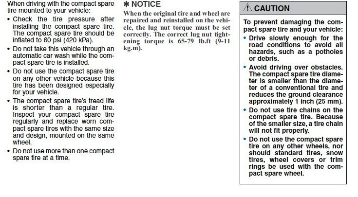 On a side note. Read the warranting below regarding the spare tire and Automatic car washes...